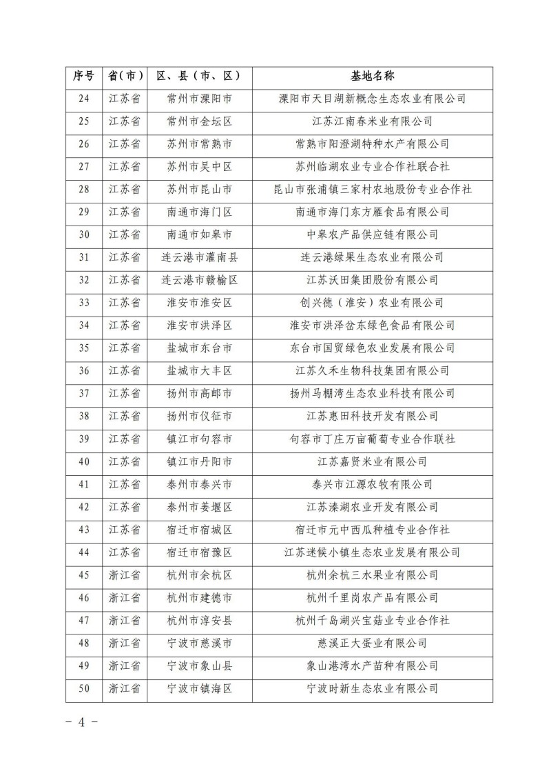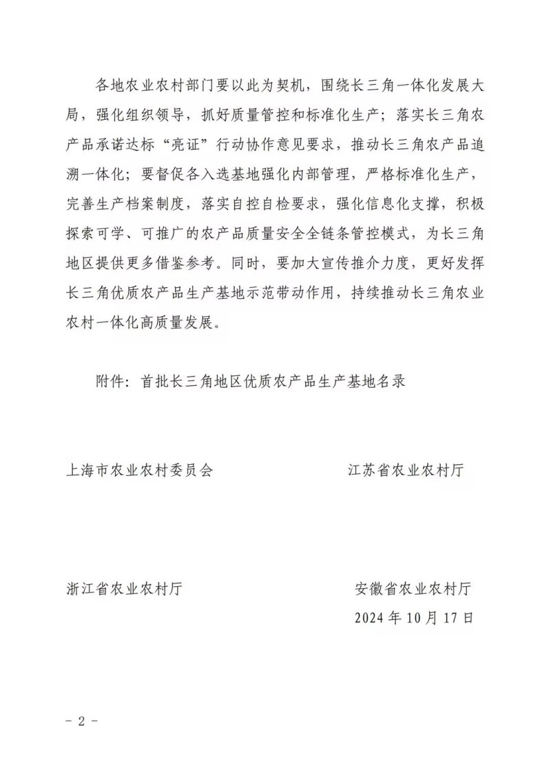 首批長三角地區(qū)優(yōu)質(zhì)農(nóng)產(chǎn)品生產(chǎn)基地名錄